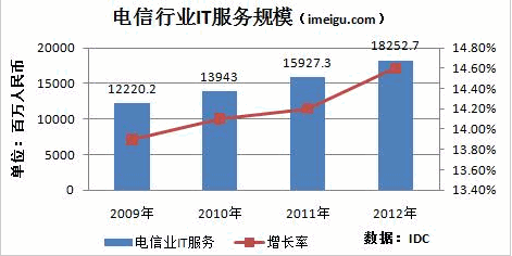 據IDC統計,中國電信(CHA,51.08,+0.79%)行業IT規模從2009年的122億元增長到2012年的182億元;復合增長率14.5%。